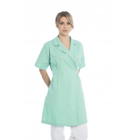 Bata senhora de trespasse em sarja poliéster-algodão.