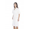 Bata senhora em sarja poliéster-algodão de manga comprida.