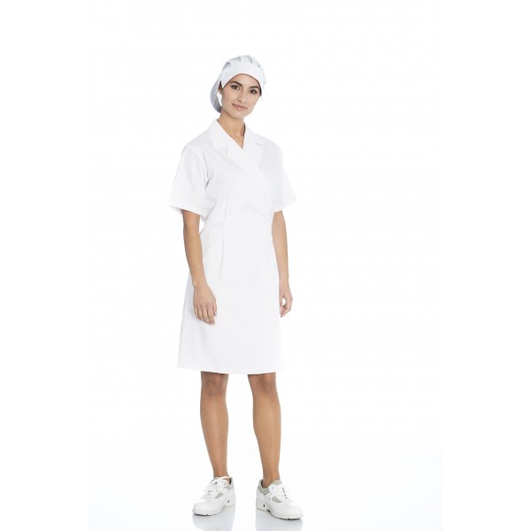 Bata senhora de trespasse em sarja poliéster-algodão