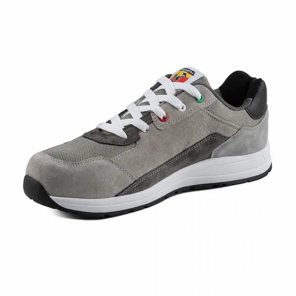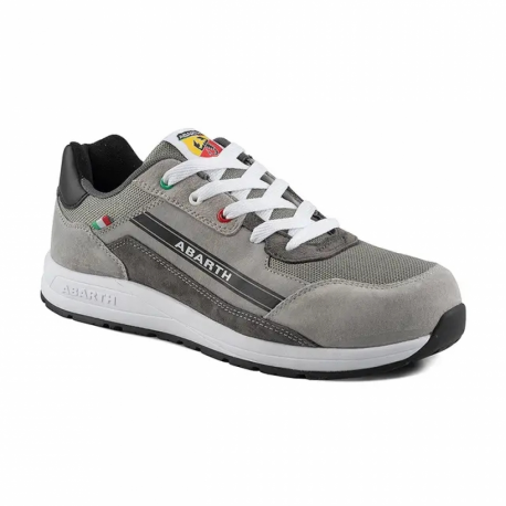 Sapato de segurança S3 em camurça com malha no peito do pé. Com forro interno de excelente qualidade para melhor respirabilidade. - A linha de calçado Abarth 595 é fabricada e certificada segundo a norma EN 20345:2011, com biqueira em fibra de vidro e palmilha têxtil anti perfuração. - Máximo conforto: Leve e flexível. - Repelente à água, antimagnética e livre de metais. - Sola EVA (Etileno, vinil e acetato) borracha, SRC antiderrapante, resistente a hidrocarbonetos, antiestática com absorção de impacto no calcanhar e HRO (resistente até 300°C). - Palmilha respirável e removível com absorção de impacto no calcanhar que beneficia a propulsão do pé. MARCA: ABARTH