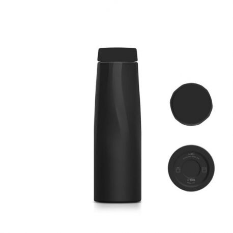 Design e Sustentabilidade. Garrafa térmica 500ml em aço inoxidável reciclado. Uma garrafa perfeita para quem ambiciona um estilo de vida ativo e mais sustentável, em qualquer época do ano. Com um design elegante, a garrafa Calypso é produzida com aço inoxidável reciclado, uma alternativa ambientalmente consciente às garrafas de plástico ainda mais eficaz. Este produto tem uma elevada durabilidade e, no final da sua vida útil, poderá voltar a ser reciclado. O aço inoxidável tem uma das mais altas taxas de reciclagem entre os metais (90%), pode ser derretido e reutilizado na produção de novos produtos, reduzindo a necessidade de novas minerações e extração de matérias-primas. Além disso, a longa durabilidade do aço inoxidável, os baixos requisitos de manutenção, a eficiência energética e a versatilidade tornam-no uma escolha perfeita quando o cliente pretende soluções sustentáveis, reduzindo a sua pegada carbónica.