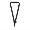 Lanyard em RPET, com mosquetão metálico e fecho de segurança. Formato simples e clássico, disponível em várias cores.