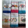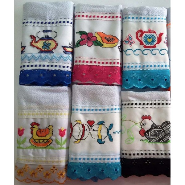 Toalha de mesa cores médias anti-nódoa com bainhas 2cm com cantos sobrepostos.