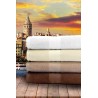 Toalha de mesa cores anti-nódoa com bainha simples com cantos sobrepostos.