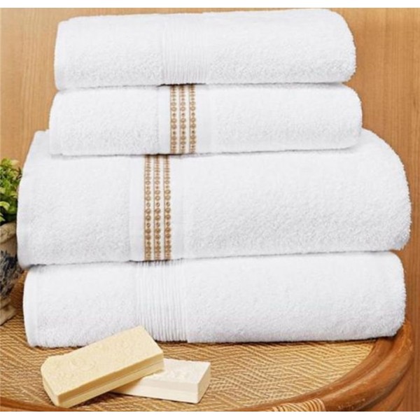 Toalha de mesa branca anti-nódoa com bainha simples com cantos sobrepostos.