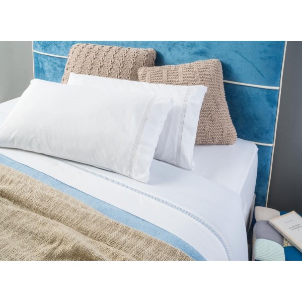 Toalha de mesa cor pastel anti-nódoa com bainhas 2cm com cantos sobrepostos.