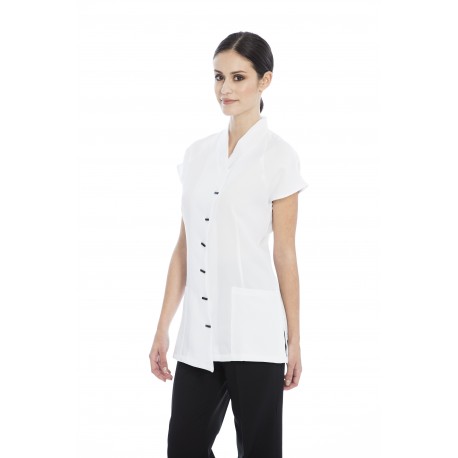 Túnica senhora em sarja poliéster-algodão de manga curta