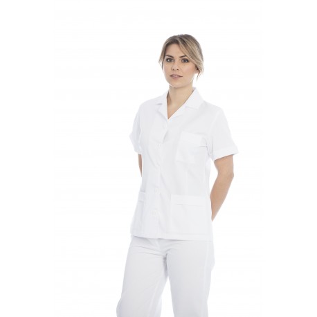 Túnica senhora em sarja poliéster-algodão de manga curta.