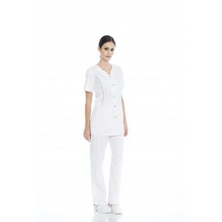 Túnica senhora em sarja poliéster-algodão de manga curta.