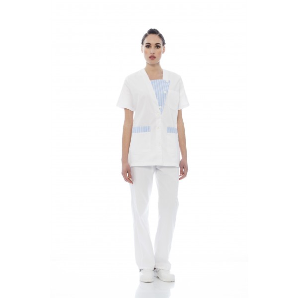 Túnica senhora em sarja poliéster-algodão de manga curta